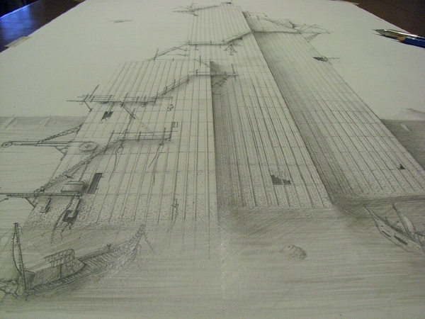 | ひたすらコンピューターに向かって図面を描く。 100年民家の中のキッチンなど。