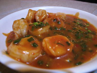 巨大なエビが安かったので、連れ合いにエビチリにしてもらった。 |