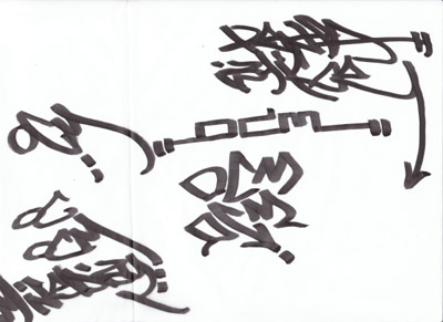 写真、2年生の学生イシケンのグラフィティ。 「ocmで描いてみて」と頼むと、さらさらと描いてくれた。僕にとっては記念の一品である。