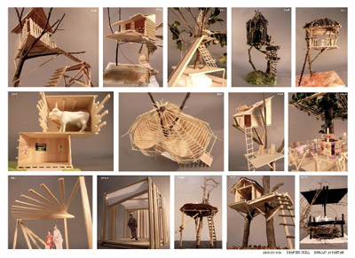 主題は、「ツリーハウス」と、言いながら、「4畳半くらいの、それは、なんでもいい、茶室でも、四阿(あずまや)でも、イベントブースでも、秘密基地でも……」それを、1/20模型にしなさい。