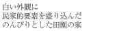 田園地帯の分譲住宅地。まわりに広がるハウスメーカー住宅の建て方にさからわず、素直に南庭の配置としました。現代的な外観にもかかわらず、内部には通り庭のような玄関や、掘りごたつ、小上がりの畳の間、縁側など民家的な要素を取り入れています。