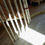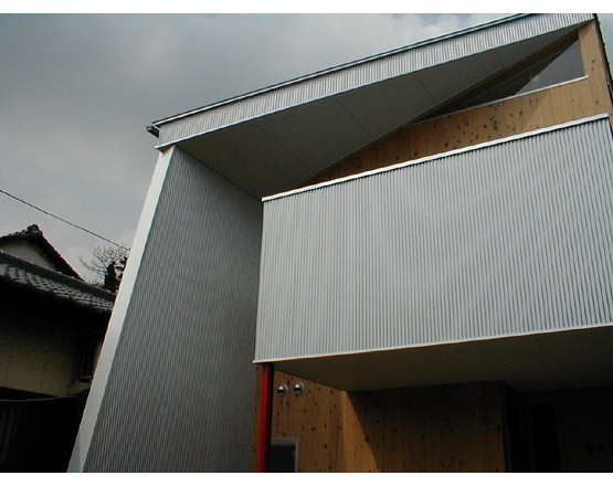 典型的なウナギの寝床のような敷地で、かつ背後には野性味あふれる崖がせまっている……。その細長さを利用して、前庭(ドライな表情)、中庭(生活の匂い)、北庭(湿潤な崖の自然をとりこむ)と三つの庭を設定し、各空間を構成しました。内部はナラ材のフローリングに、壁は針葉樹の合板貼りとシンプルに仕上げ、子供の遊びを誘うような工夫を各所に設けました。